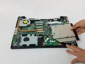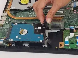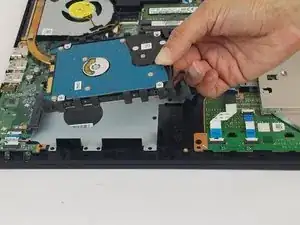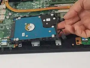 Поднимите жёсткий диск снизу с правой стороны.