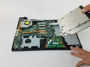 Сдвиньте дисковод вправо и аккуратно поднимите его, извлекая из ноутбука.