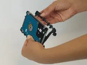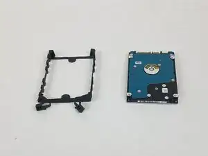 Снимите оба фиксирующих элемента с резинового крепления жёсткого диска.