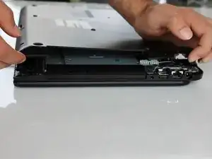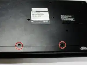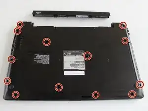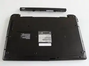 Переверните ноутбук так, чтобы батарея оказалась сверху.