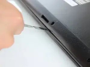 Вставьте лопатку (spudger) в середине в зазор между нижней крышкой и клавиатурой и подденьте вверх.