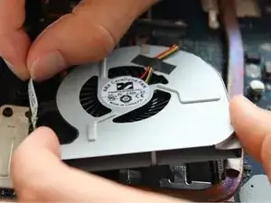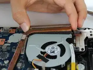 Аккуратно приподнимите медный радиатор, чтобы сделать вентилятор более доступным.