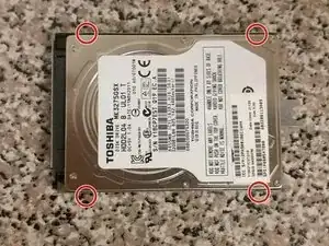 Снимите четыре винта, фиксирующие жесткий диск в корзине.