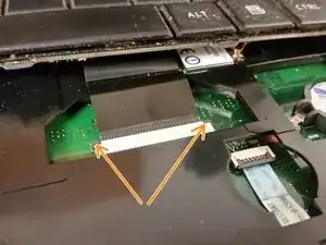Вытяните ослабленный кабель клавиатуры из разъема.