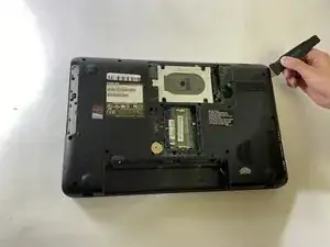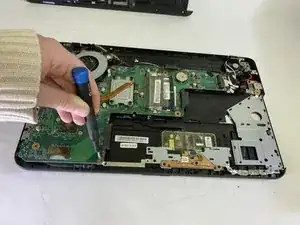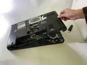 Снимите заднюю панель ноутбука, открыв доступ к материнской плате и другим внутренним компонентам.