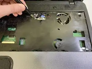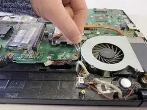 Удалите два винта Phillips #00 длиной 3 мм, удерживающих охлаждающий вентилятор.