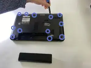 Удалите десять винтов Phillips #00 длиной 6 мм вокруг нижней панели.