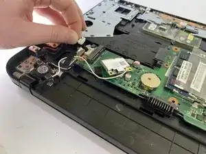 Отсоедините следующие два кабеля, находящиеся внутри квадрата у заднего правого края ноутбука.