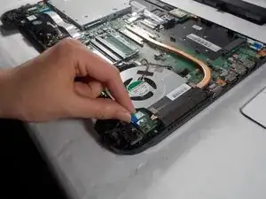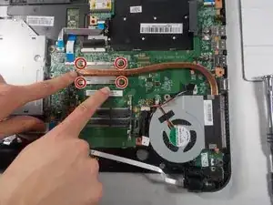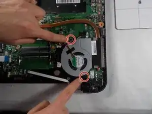 Осторожно снимите радиатор с вентилятором с ноутбука и отложите в сторону.