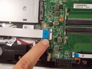 Осторожно вытащите привод CD, отключив его от разъема материнской платы, обозначенного синим цветом.