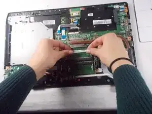 Осторожно приподнимите материнскую плату с задней части ноутбука.