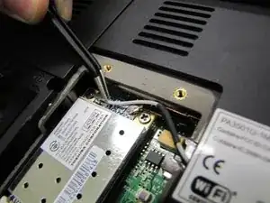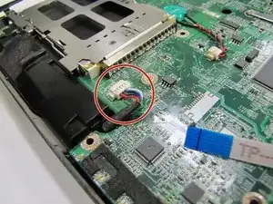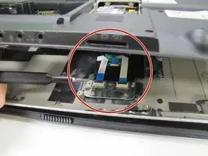 С помощью пинцета отсоедините два ленточных кабеля внизу ноутбука.