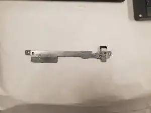 Отключите жёсткий диск (серебристая прямоугольная коробка в левом нижнем углу ноутбука), откинув маленький чёрный фиксатор разъёма вверх и вытянув разъём наружу.