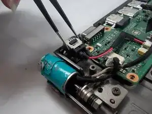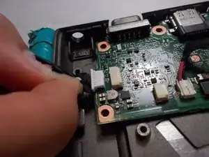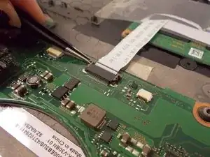 Потяните проводной кабель вверх, в сторону верхней части ноутбука, чтобы отсоединить его от разъёма на материнской плате.
