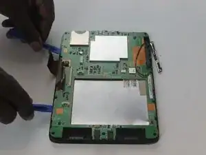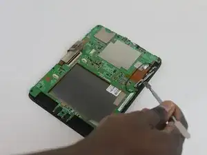 Вставьте небольшой инструмент для вскрытия между задней панелью и корпусом планшета.