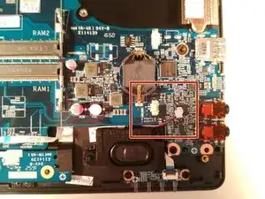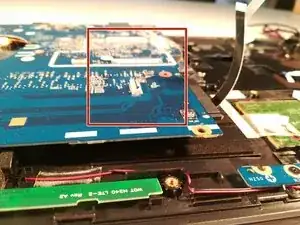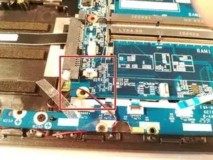 Отключите разъём, отмеченный красным, поддев и подняв его вверх.