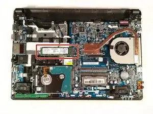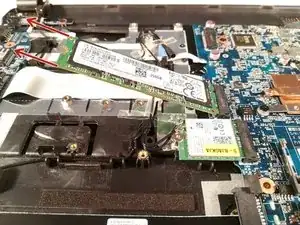 Извлеките планку оперативной памяти в направлении красных стрелок.