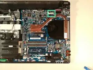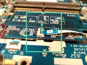 Поднимите чёрный фиксирующий язычок, удерживающий разъём, отмеченный зелёным.