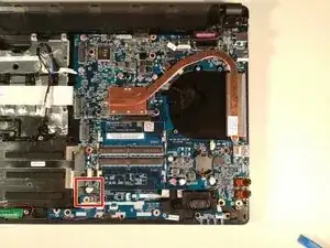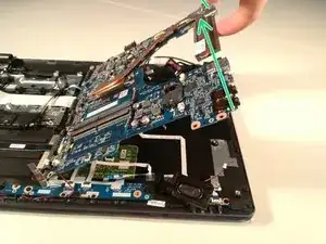 Поднимите материнскую плату, взяв её за радиатор, как показано на второй фотографии.