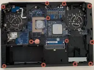 Снимите 12 винтов с крестообразным шлицем, крепящих нижнюю часть корпуса.