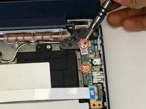 Удалите оба винта Phillips #1 4.5 мм с дочерней платы.