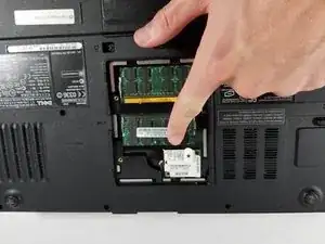 Найдите "кромку" на ноутбуке, чтобы вытащить батарею из отсека.