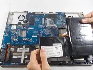 Поднимите аккумулятор пальцами и извлеките его из ноутбука.