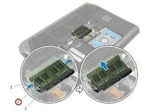 Сдвиньте и извлеките модуль памяти из слота для модуля памяти.