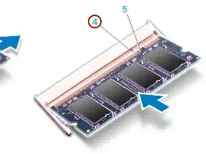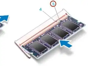 Вставьте модуль в разъем модуля памяти под углом 45 градусов и надавите на модуль до щелчка. Если вы не слышите щелчка, извлеките модуль и установите его снова.