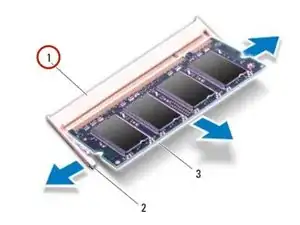 Аккуратно раздвиньте закладки на каждом конце соединителя модуля памяти до тех пор, пока модуль памяти не приподнимется.