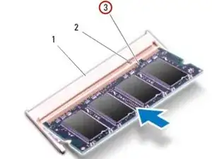 Вставьте модуль памяти в соединитель под углом 45 градусов и нажмите на модуль памяти до щелчка. Если вы не слышите щелчка, удалите модуль памяти и установите его снова.