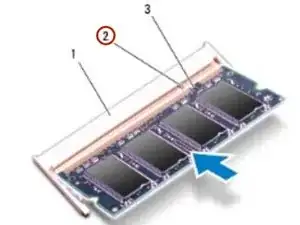 Вставьте модуль памяти в разъем под углом 45 градусов и нажмите на модуль памяти до щелчка. Если вы не слышите щелчка, извлеките модуль памяти и установите его заново.