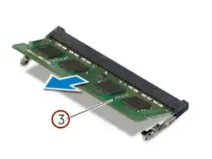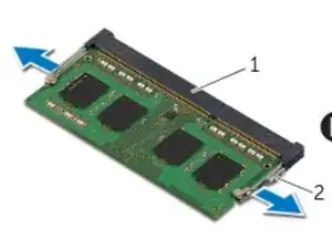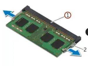 Аккуратно разжмите крепежные зажимы с каждого конца разъема модуля памяти до того момента, как модуль памяти поднимется.