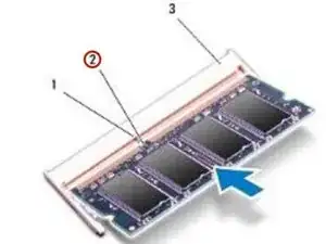 Совместите вырез на НОВОМ модуле памяти с выступом в разъёме модуля памяти.