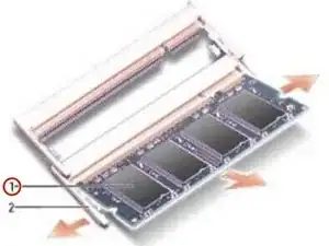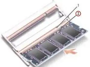 Используйте кончики пальцев, чтобы аккуратно разжать зажимы на каждом конце разъема модуля памяти, пока модуль не поднимется.