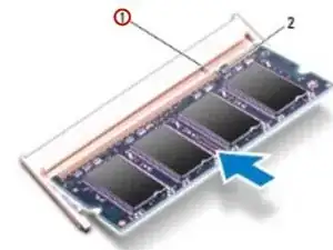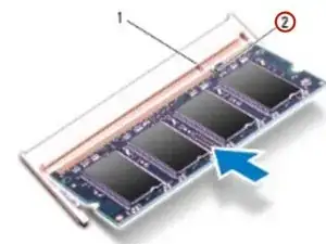 Плотно вставьте модуль памяти в разъём под углом 45 градусов и нажмите вниз, пока он не зафиксируется с щелчком. Если щелчка не слышно, извлеките модуль памяти и повторно установите его.