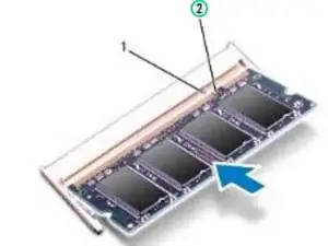 Совместите выемку в НОВОМ модуле памяти с выступом в разъёме модуля памяти.