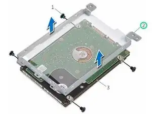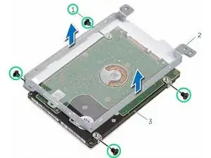 Удалите четыре винта (M3x3), которые крепят кронштейн жесткого диска к самому диску.