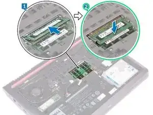 Нажмите на модуль памяти вниз, пока он не зафиксируется на месте.