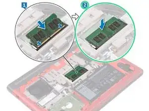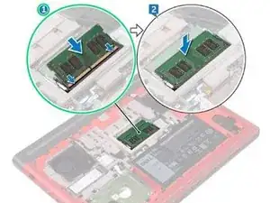 Нажмите на модуль памяти вниз, пока он не щелкнет на месте.