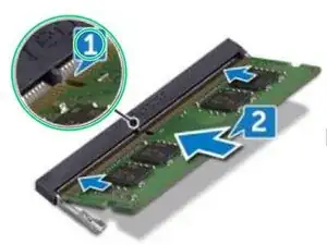 Вставьте модуль памяти в разъём под углом, плотно направляя его.