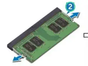 Осторожно раздвиньте защёлки с обоих концов разъёма модуля памяти кончиками пальцев, пока модуль не приподнимется.