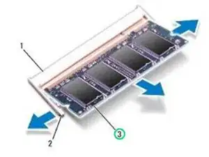 Используйте кончики пальцев, чтобы аккуратно расставить зажимы на обоих концах разъема модуля памяти, пока модуль памяти не поднимется.