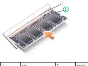 Совместите выемку на контактном крае НОВОГО модуля памяти с выступом в слот-разъёме.