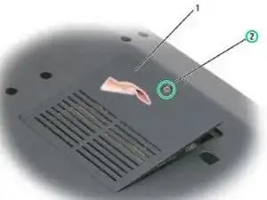 Ослабьте удерживающий винт крышки отсека модулей памяти, затем снимите крышку и отложите её в сторону.
