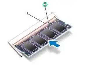Плотно вставьте модуль памяти в разъем под углом 45 градусов и нажмите на модуль памяти, пока он не зафиксируется на месте. Если Вы не слышите щелчка, удалите модуль памяти и установите его снова.