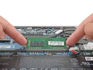 В вашем ноутбуке два слота памяти, в каждом по паре металлических удерживающих рычагов, фиксирующих модуль памяти. Этот ноутбук поддерживает модули DDR4 SODIMM.