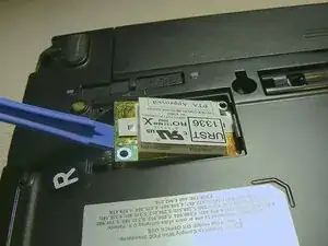 Осторожно приподнимите модуль беспроводной связи с помощью пластикового инструмента, не отсоединяя провода.