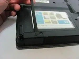 Переверните компьютер верхней частью вниз и найдите второй справа винт Philips #1 на нижнем левом углу.