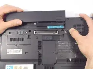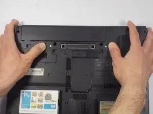 Как только оба замка батареи разблокированы, сдвиньте батарею, чтобы удалить.